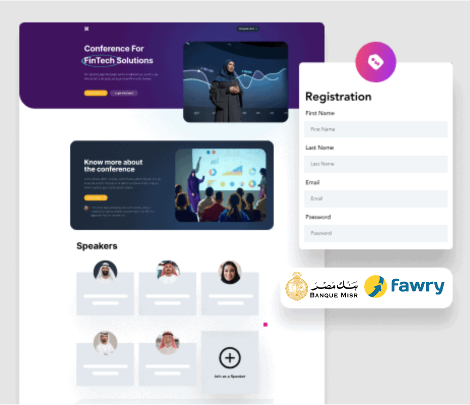 - إعداد نماذج التسجيل وحجز التذاكر والمدفوعات.