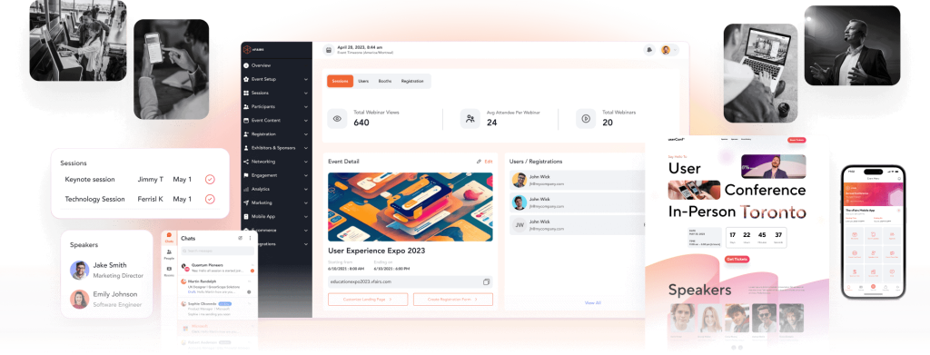 امنح العارضين والرعاة مساحة خاصة بيهم للتعامل مع المحتوى الخاص بهم وتتبع اجتماعتهم والتواصل والحضور .